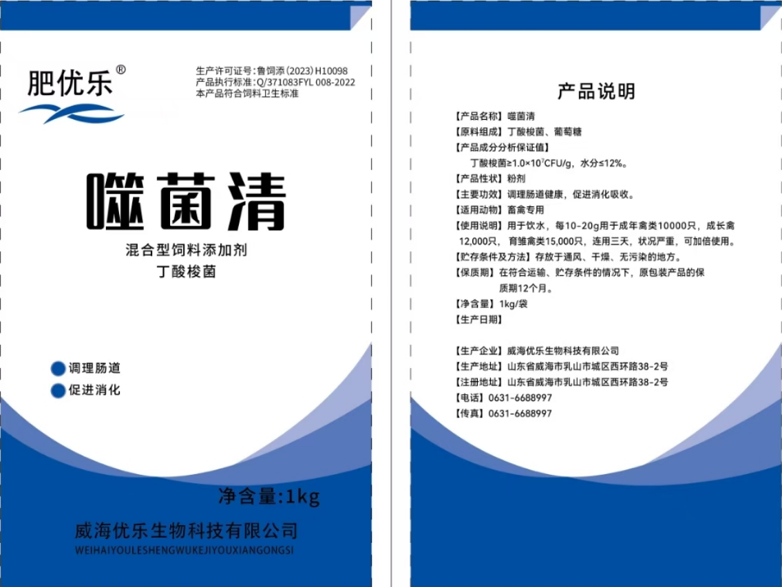 威海優樂生物科技有限公司成立于2017年,是一家以微生物為核心的飼料添加劑高新技術企業。公司主要從事丁酸梭菌、糞腸球菌的生產和銷售,同時進行水產及畜禽有害菌噬菌體的研究與開發,公司高度重視技術研發,每年投入大額研發費用,目前擁有一支由5名博士和10余名碩士組成的高素質研發隊伍,對微生態發酵領域的先進技術進行攻關。在堅持自主研發的同時,與大學等科研院所合作,生產具有靶向極強的生物產品,為減抗替抗作出貢獻。